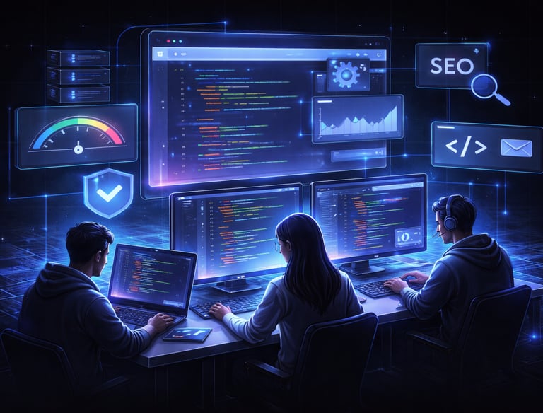 Somos especialistas em criação de sites profissionais para empresas que desejam crescer no digital com posicionamento estratégico, geração de leads e presença online forte. Desenvolvemos sites modernos, responsivos e rápidos, estruturados para conversão e otimizados para SEO. Unimos inteligência artificial para acelerar a execução com curadoria estratégica humana para garantir consistência, autoridade e performance. O resultado é um site que comunica valor, transmite confiança e transforma visitantes em oportunidades reais de negócio.